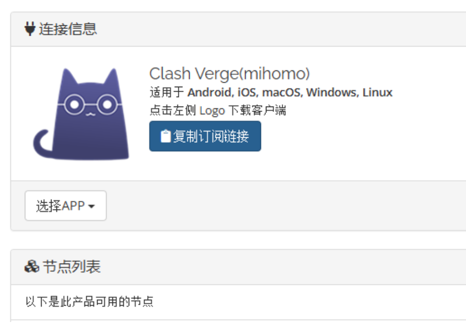 订阅地址在你购买的套餐里面, 先点 app 出来的菜单里面选择Clash Verge 然后点上面的 复制订阅地址
